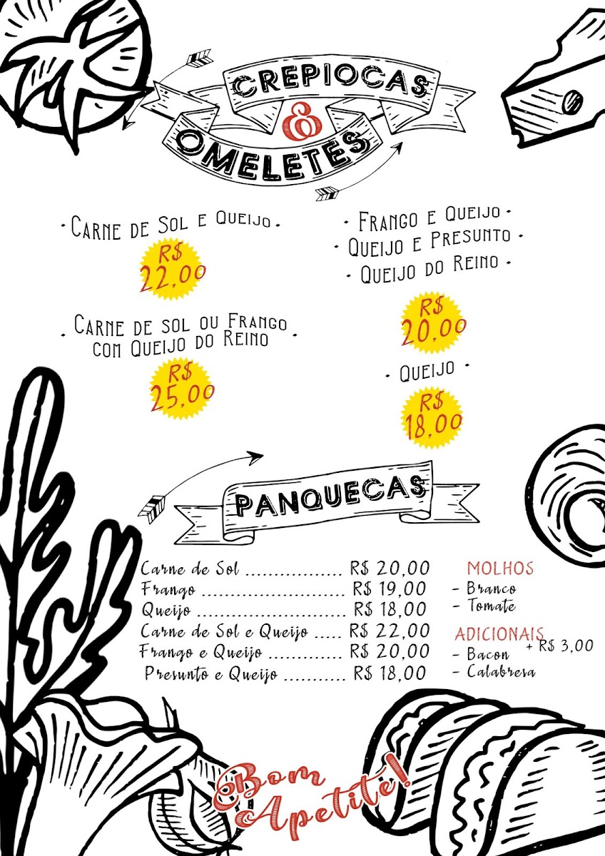 Crepioca / Omelete (de R$ 18,00 a R$ 25,00 conforme o recheio)