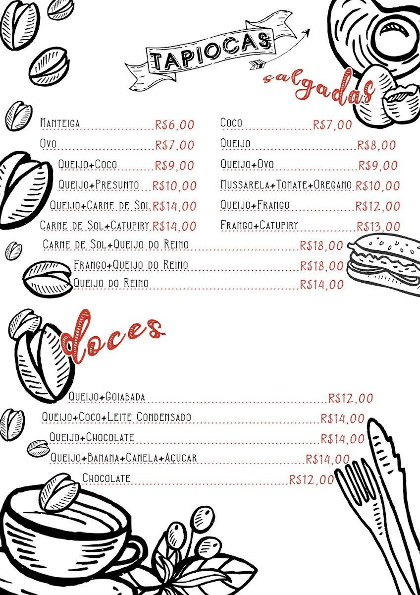 Tapiocas (de R$ 6,00 a R$ 18,00 conforme o sabor)